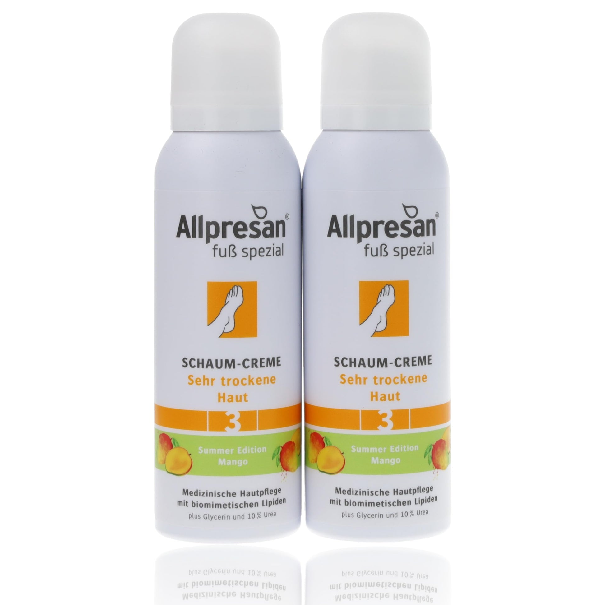 Allpresan Fuß Spezial Nr. 3 Schaum-Creme mit Mango Duft - Fußcreme für sehr trockene Haut - Zur täglichen Fußpflege sehr trockener Füße - 2x125 ml