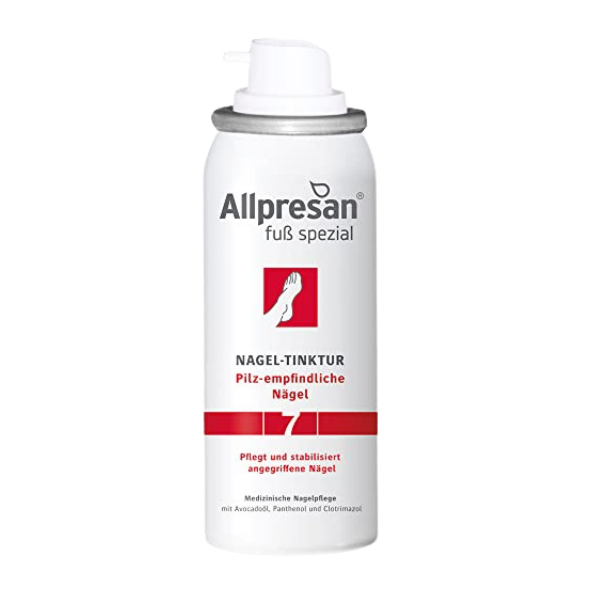 Eine Nagelpilzinfektion entwickelt sich häufig als Konsequenz einer Fußpilzinfektion. Obwohl sie für die Zehennägel nicht unmittelbar gefährlich ist, kann sie schmerzhafte Auswirkungen haben und die Lebensqualität beeinträchtigen. Mit der Zeit kann sich der Pilz weiter ausbreiten, und die Behandlung wird umso komplexer und langwieriger, je länger er unbehandelt bleibt. Die Allpresan Fuß spezial Nr. 7 Nagel-Tinktur wurde gezielt für die begleitende Pflege von pilzempfindlichen Nägeln entwickelt. Diese Nagelpflege mit Avocadoöl, Panthenol und Clotrimazol stärkt, pflegt und stabilisiert die Nägel, schützt sie vor mikrobiellen und physiologischen Einflüssen und verändert das Nagelumfeld so, dass es für Nagelpilz weniger günstig ist.